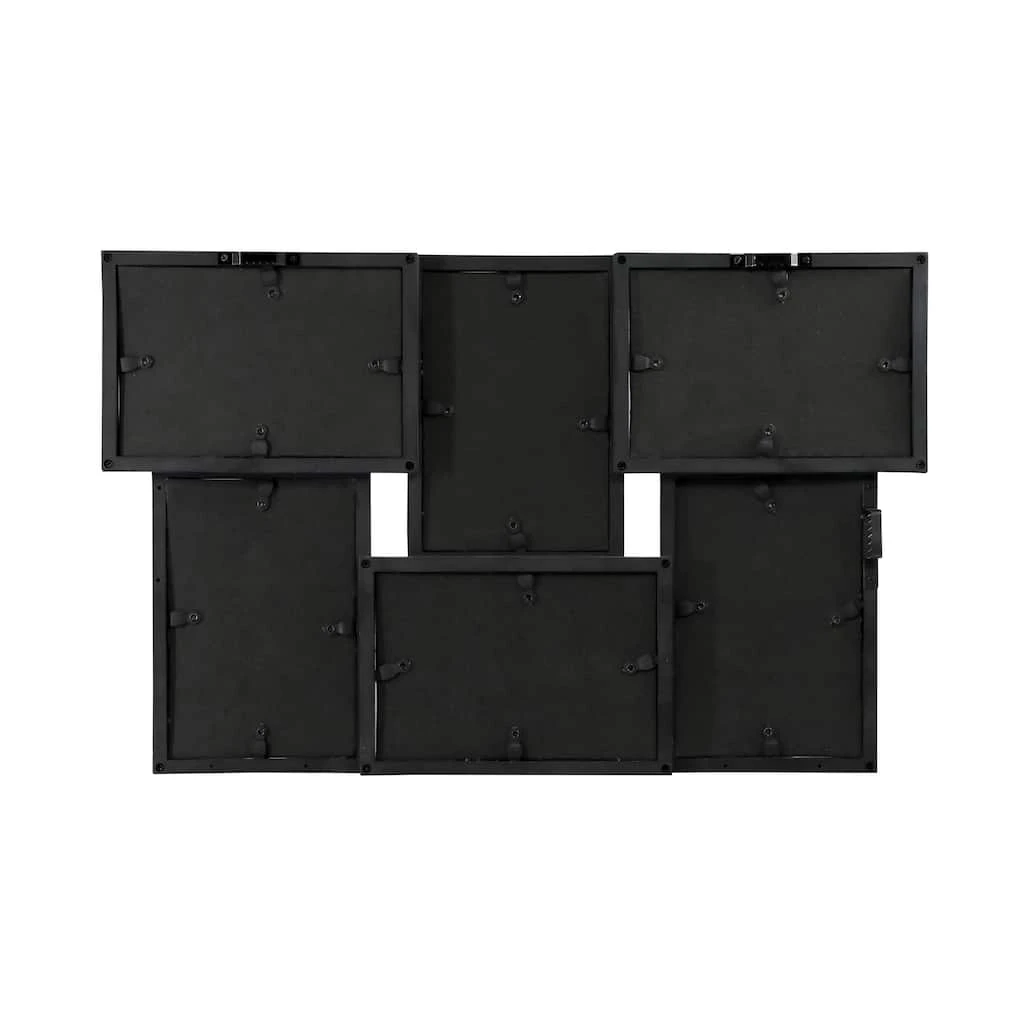 This contemporary, lightweight plastic collage has six individual frames that are connected to create a dimensional or layered look. It’s ideal for displaying pictures of family and friends.