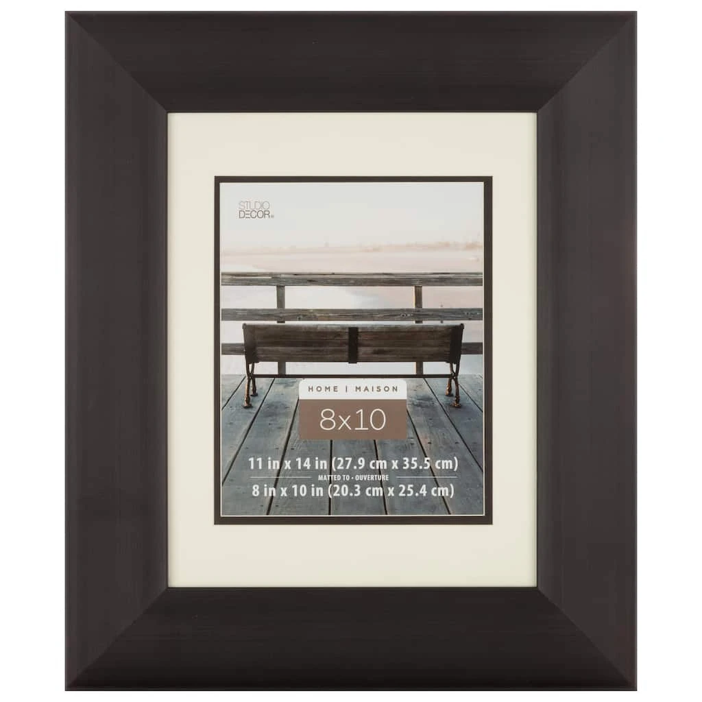 Display your picture in style with this beautiful portrait frame from Studio Décor. The mat and fillet will enhance the beauty of your image. Frame includes a thick piece of clear glass to protect your artwork. Mat fits 8″ x 10″ photo, or you can remove the mat for a 11″ x 14″ photo.