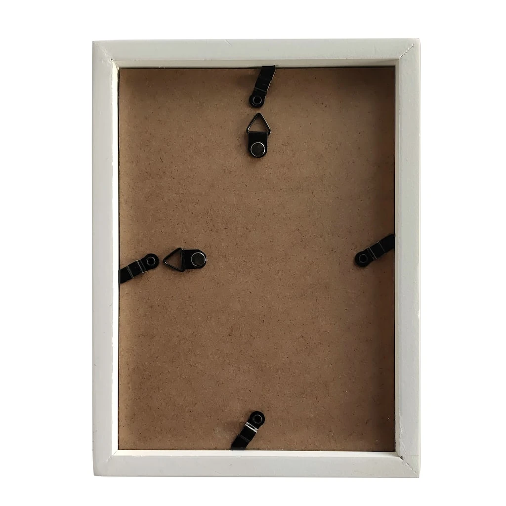 - Matte white frame with black velour backing