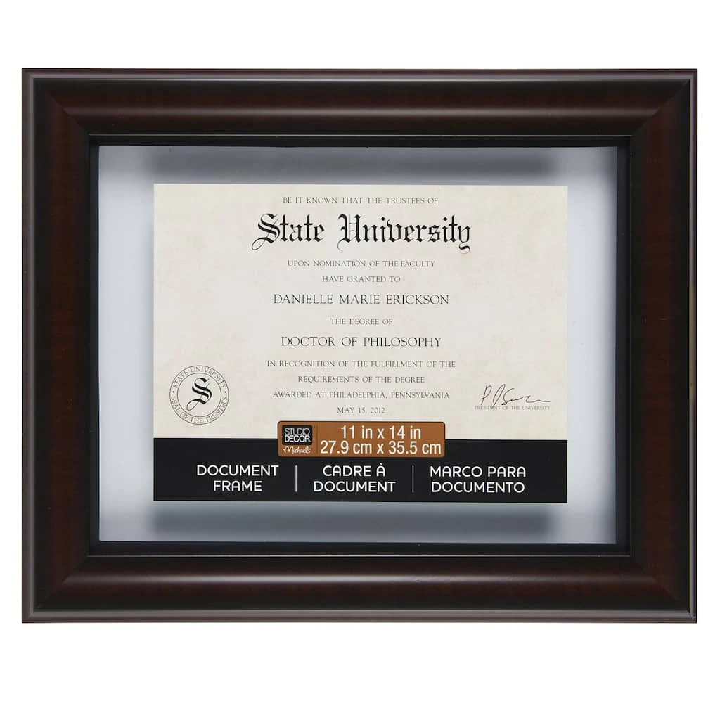 Display your certificates, photos, and art in style. You will be proud to have your precious document presented in this frame, which can be used as a standard frame or a trendy floating frame.