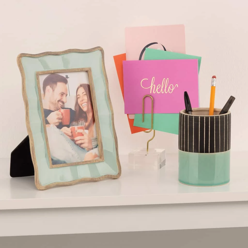 Gift this gorgeous frame with a distressed finish to your loved one. It is perfect to display a cherished photograph, work of art, postcard or handwritten letter on a tabletop or mantel.