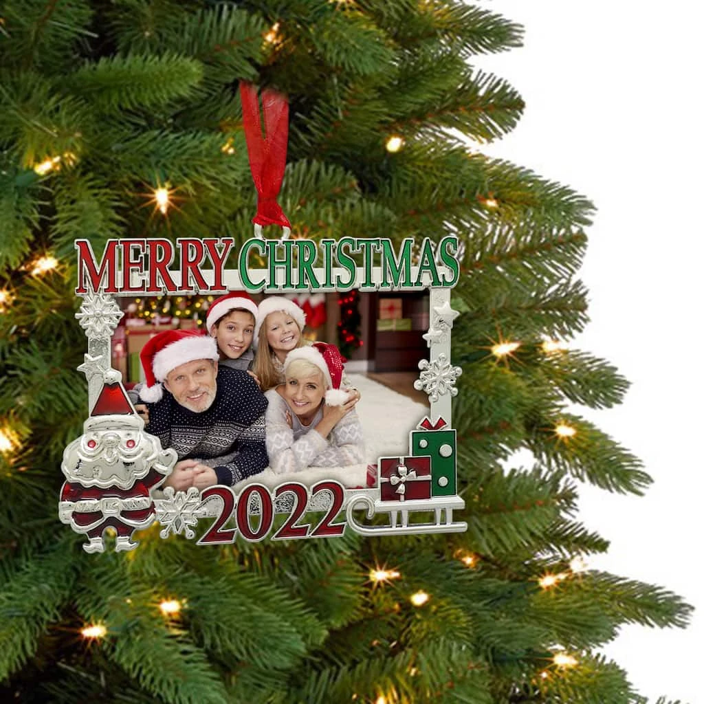 Display a wonderful holiday memory with this lovely “Merry Christmas” ornament frame by Studio DΓ©cor. Hang it on your Christmas tree. This simple accent is guaranteed to make a fun addition to your holiday dΓ©cor.