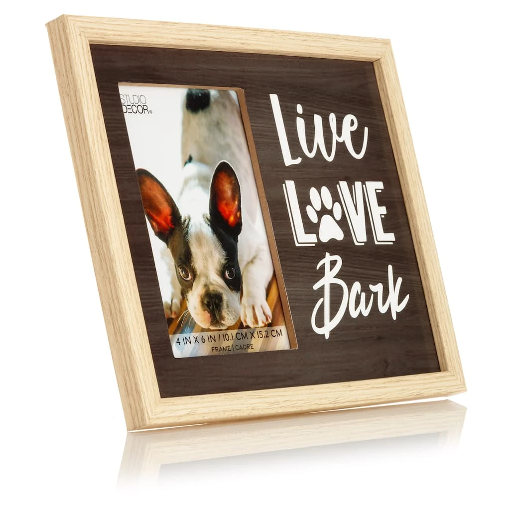 This frame features a loving sentiment and will add a fun touch to your dΓ©cor. Display a photo of your favorite furry creature on your mantelpiece paired with other family photos and a ceramic vase of bright flowers.
